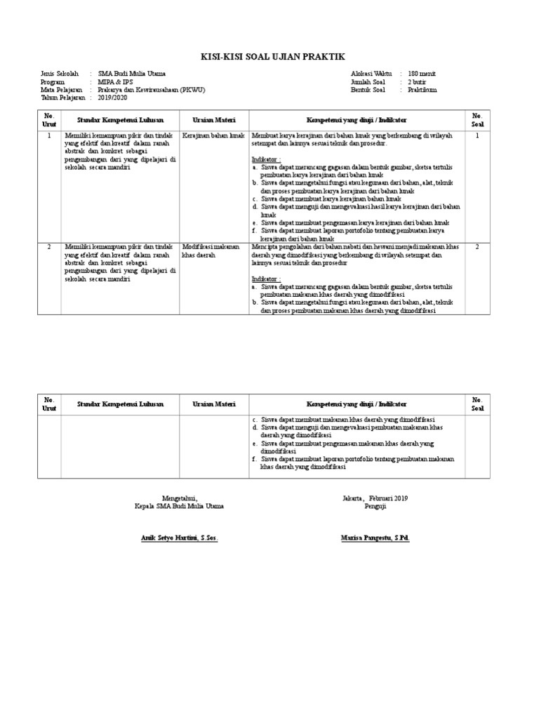 Mtsn 2 kota bengkulu ujian praktik prakarya. Untuk lebih jelasnya silahkan copy kumpulan bocoran contoh soal uas(ujian akhir semester) pkwu (prakarya kewira usahaan) kelas 12 semeseter 6 smk/sma/ma sederajat tahun. Video ujian praktek prakarya kelas ix membuat kerajinan limbah alam. Pilihlah salah satu jawaban a, b, c, d, atau e di bawah ini yang paling tepat! Teknik apakah jika pengolahan bahan makanan menggunakan bahan dasar cairan agar dapat mematangkannya ialah ….